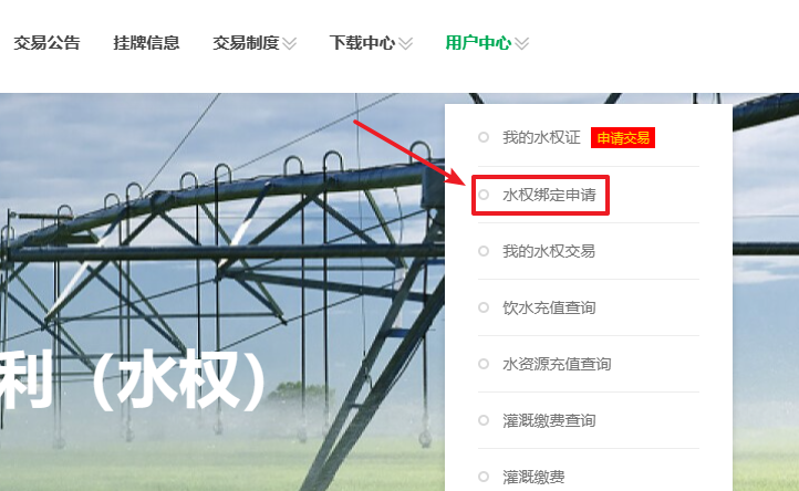 2.点击“申请绑定水权证”,进入“申请绑定水权证”页面