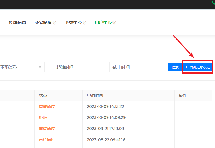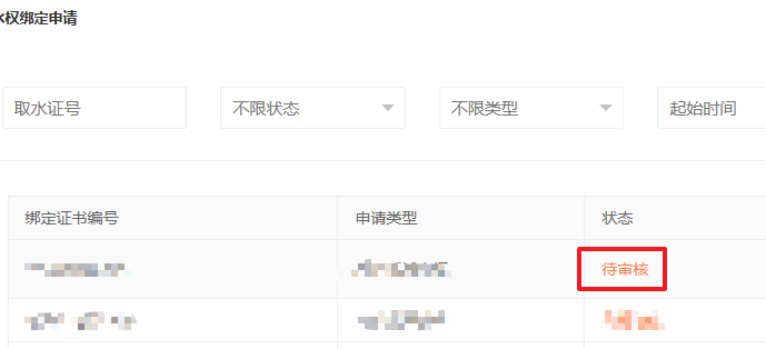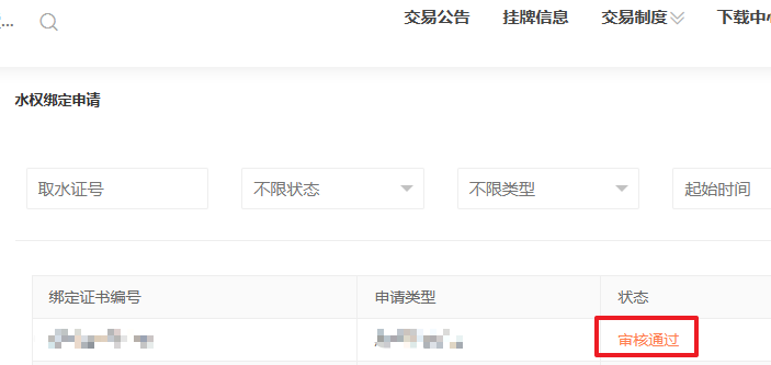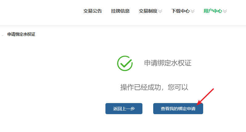 4.提交信息无误,操作成功即可点击“查看我的绑定申请”,返回水权绑定申请首页查看相关信息,等待管理员审核